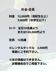 今シーズンより料金、チャーター人数等に